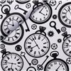 Toile de coton avec une main douce et imprimé fantaisie (montres). Il peut être utilisé dans le cadre du carnaval, médical (pour les masques) et des accessoires pour les vêtements et les enfants.